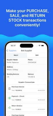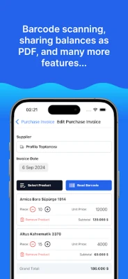 Az Inventory Management - Ofisx számos kulcsfontosságú eszközt kínál az Ön keze ügyébe. Részletes terméknyilvántartást hozhat létre, amely magában foglalja a vonalkódokat, árakat és mennyiségeket, így mindig naprakész képet kaphat készleteiről. Kezelje könnyedén partnereit – legyen szó beszállítókról vagy vevőkről –, rögzítse adataikat és kövesse nyomon tranzakcióikat. A számlák kezelése gyerekjáték: gyorsan kiállíthat bevételi, kiadási vagy visszáru számlákat. A beépített vonalkód-leolvasó funkcióval az új termékek rögzítése a készüléke kamerájával pillanatok alatt elvégezhető, jelentősen felgyorsítva a munkafolyamatokat.
