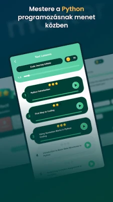 Ismerd meg a Python programozást könnyedén, interaktív oktatóanyagok, gyakorló feladatok és izgalmas kvízek segítségével. Kezdőktől a haladókig mindenki számára ideális, ez az alkalmazás lépésről lépésre vezeti a felhasználókat a kódolás világában. Fejleszd tudásod hatékonyan!