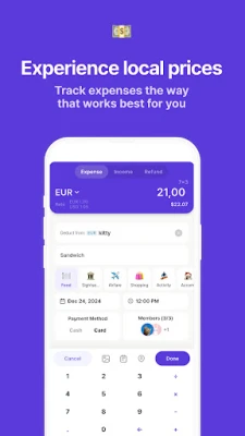A TrabeePocket segítségével pillanatok alatt rögzítheti kiadásait útközben, így sosem felejti el, mire ment a pénze. Az alkalmazás azonnal mutatja az elköltött összeget és a fennmaradó keretet, áttekinthető statisztikákkal segítve a pénzügyi tervezést. A külföldi valuták gyakran "valótlan" érzetet keltenek – de a TrabeePocket azonnal átváltja a költségeket az otthoni pénznemére, valósabb képet festve. Kezeljen több valutát, állítson be saját árfolyamokat, és szabja személyre kategóriáit: adja hozzá vagy távolítsa el azokat, módosítsa ikonjaikat és színeiket. Minden egyes tételhez jegyzetet és képet is csatolhat, így nemcsak a költségeket, hanem az azokhoz fűződő emlékeket is megőrzi.